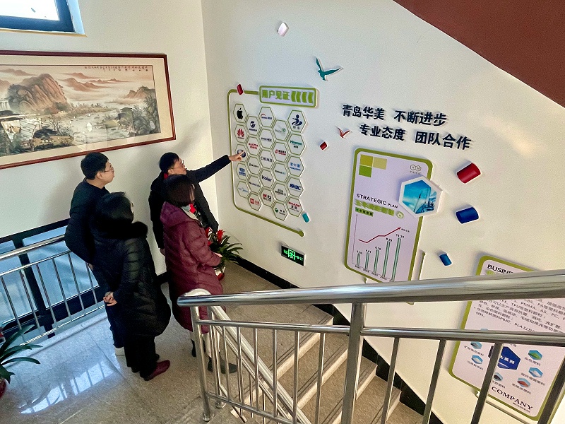 青島中新華美總經(jīng)理王東先生對城陽街道領(lǐng)導(dǎo)表示熱烈歡迎,對城陽區(qū)委、區(qū)政府及統(tǒng)戰(zhàn)部對中小企業(yè)的關(guān)心與支持表示感謝。王東總經(jīng)理詳細介紹了中新華美2021年生產(chǎn)經(jīng)營、技術(shù)創(chuàng)新、核心產(chǎn)品研發(fā)等情況,同時就企業(yè)數(shù)字化轉(zhuǎn)型、品牌打造、戰(zhàn)略規(guī)劃等進行了深入地講解。